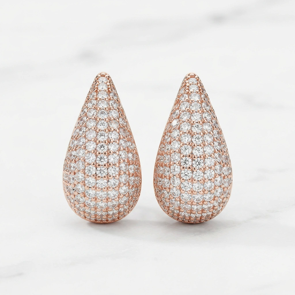Su diseño en forma de gota crea una pieza femenina y llamativa, ideal para aportar brillo y distinción a cualquier look.