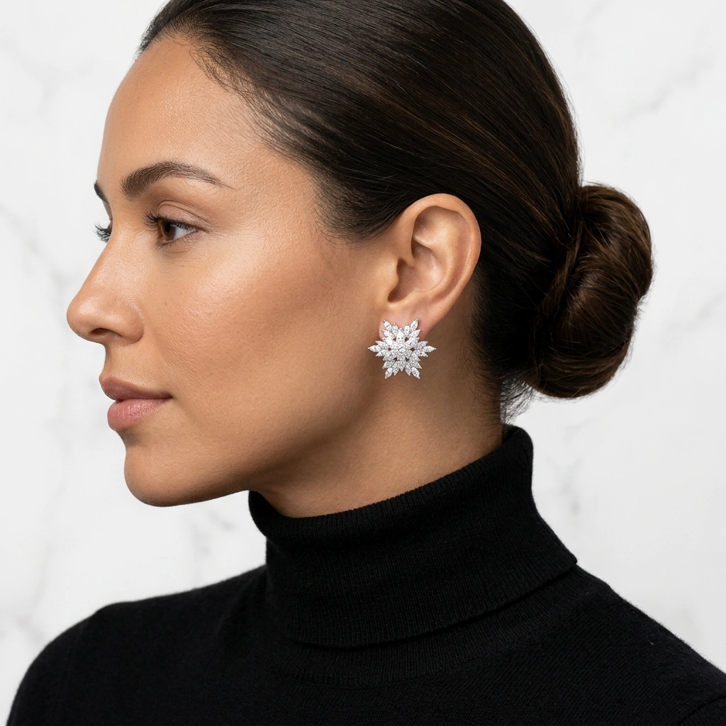 Aretes Star elaborados con circonias cúbicas, diseñados para destacar con un estilo elegante, brillante y sofisticado. Su diseño geométrico en forma de estrella floral crea una pieza llamativa y refinada, ideal para aportar luz, glamour y distinción a cualquier look. Femeninos y versátiles, son perfectos para ocasiones especiales, celebraciones o.