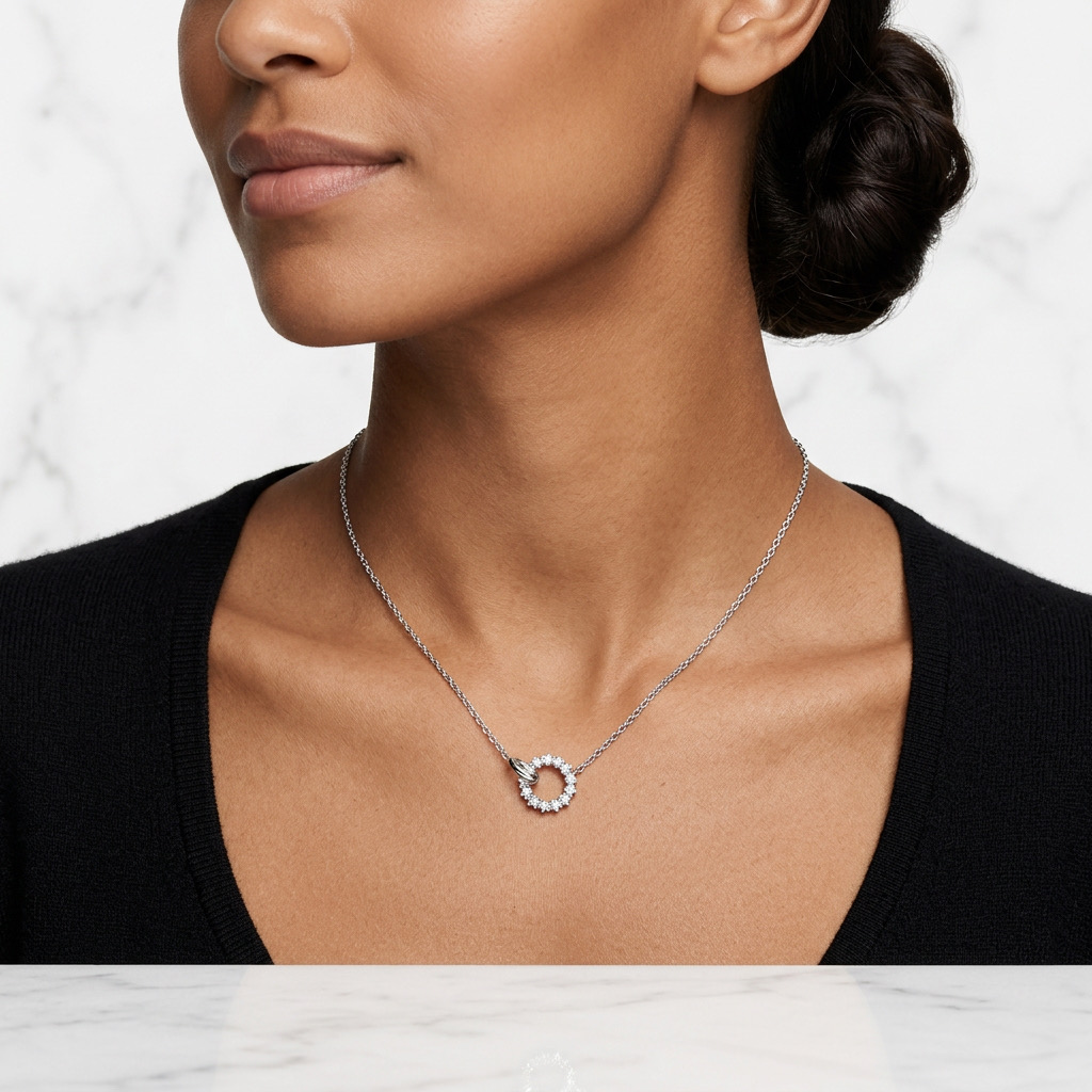 Collar delicado en plata con finos zircones que capturan la luz con un brillo sutil y elegante, ideal para realzar cualquier look con un toque sofisticado.